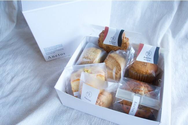 スコーンやマフィン、レモンケーキ、クッキーなどが入った焼き菓子詰め合わせは、「Anetos」の人気NO.1商品。定番のラインナップに加えて2種類の季節限定焼き菓子がセットになっています。
