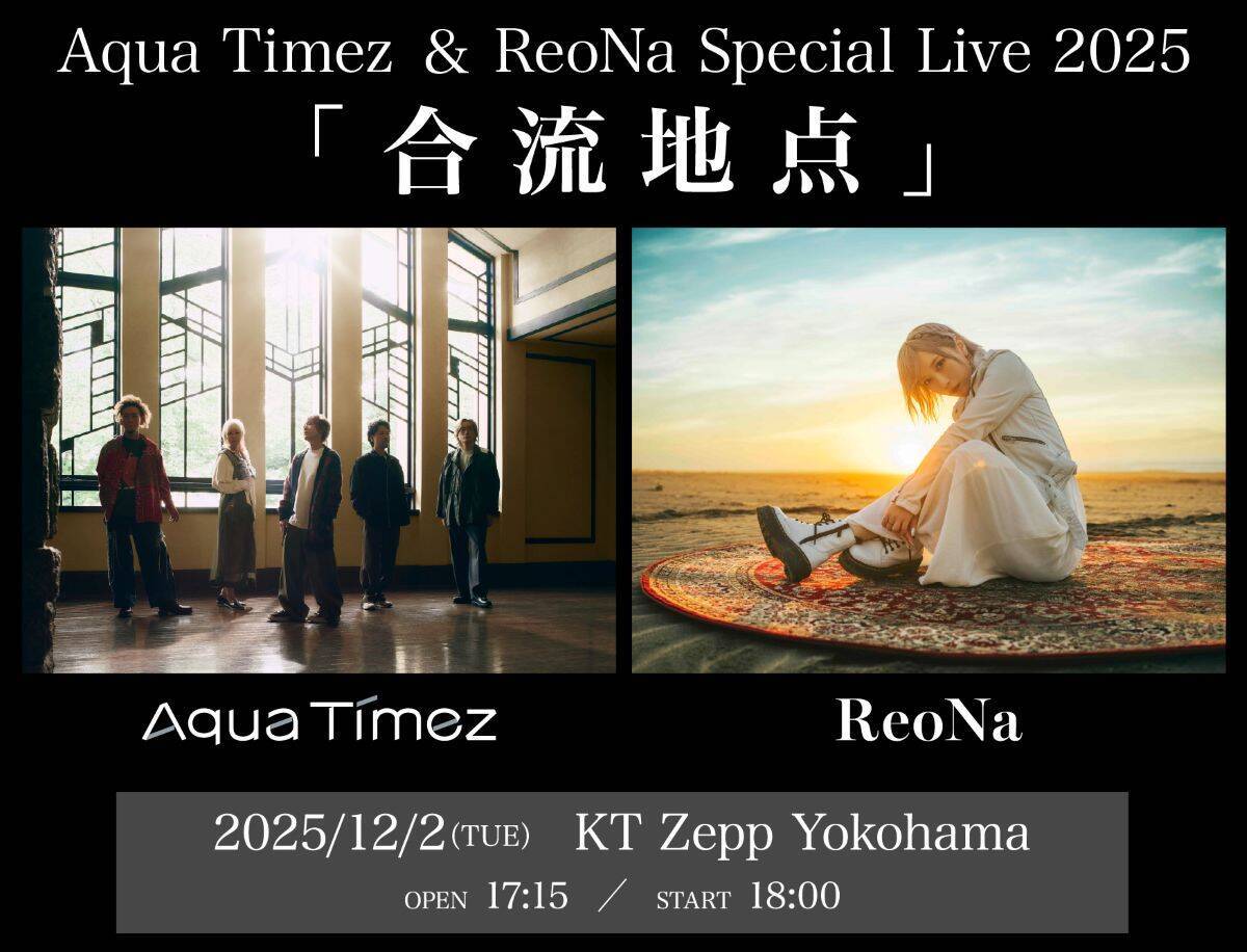 2025年12月2日(火)、KT Zepp Yokohamaで開催される、Aqua TimezとReoNaによるツーマンライブのタイトルが “Aqua Timez & ReoNa Special Live 2025『合流地点』” に決定した。