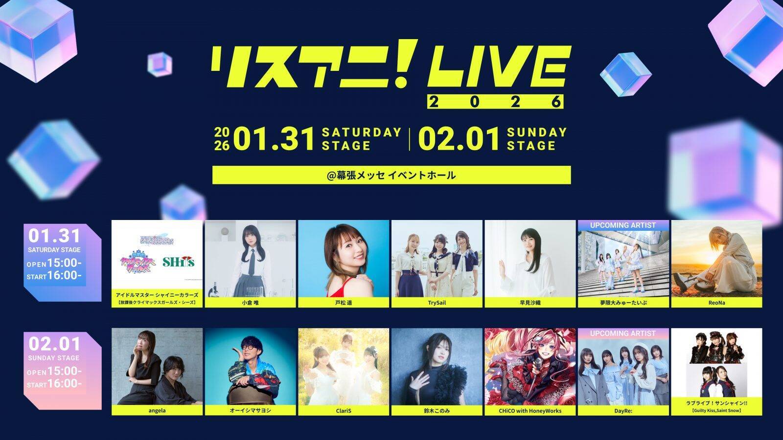 “リスアニ!LIVE 2026”の公式サイトでは、公演概要やチケット情報、出演アーティストの詳細などを掲載。