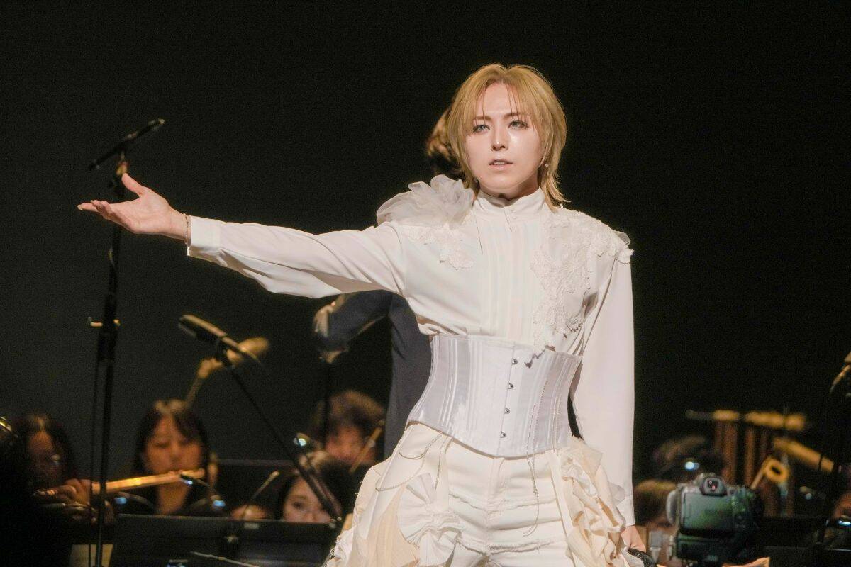 「ようこそお越しいただき、ありがとうございます」と挨拶し、「夢にまでみたオーケストラコンサート。初めての大切な瞬間を、皆さんと大切に過ごしていきたいと(タイトルに)Momentsとつけさせていただきました」とこの日への想いを語り、「君がいるから次の扉を開いていける、そんな曲です」と告げて、憂いをのせた「Key to My Heart」へ。そして「深い深い、海の中の物語をお聴きいただこうと思います」と告げて続いたのは、遠く響くホルンの音とユニゾンした蒼井の深い歌声から始まり、オリエンタルなメロディーが物語を紡ぐ「Endless Song」。蒼井とオケに降り注ぐ青いライトと透き通ったハイトーンファルセットが、幻想を作り上げた。次に届けたのはピアノと弦楽が別れの哀しみに満ちた歌声に寄り添う「spilt memories」。静かに続く感動が、心を揺さぶった。