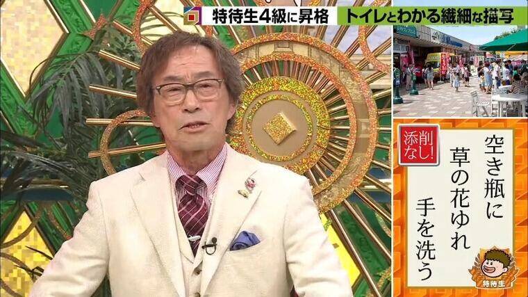 その狙いはピタリとハマり、夏井先生も「面白い企み」と納得の傑作が誕生した。「意図的に、作者の思う方向に読者の読みを誘導していく、そういう企みです。名詞と数詞だけを使ってその場の映像、人物、会話、心情を想像させるわけですから、この企みにみんなで拍手を送るしかないかなと思います」と夏井先生。浜田からも「脱"吾子"でございます」と拍手を送られた千原ジュニア、永世名人の面目躍如!