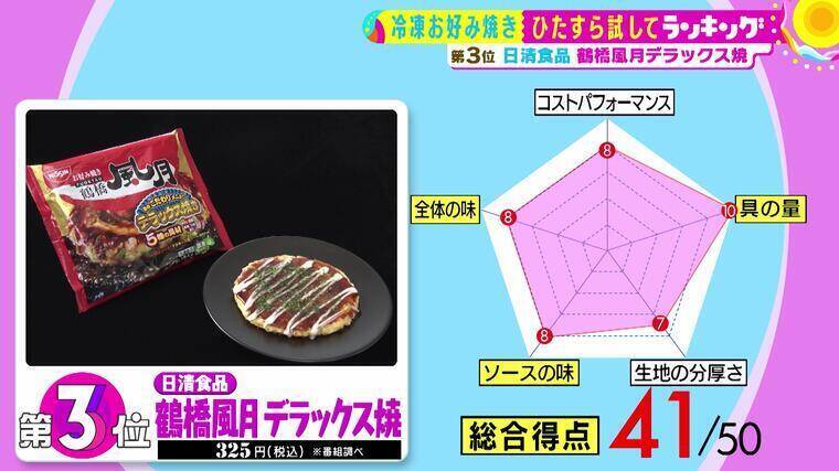 第3位は日清食品の『鶴橋風月 デラックス焼』(税込325円 ※番組調べ)。