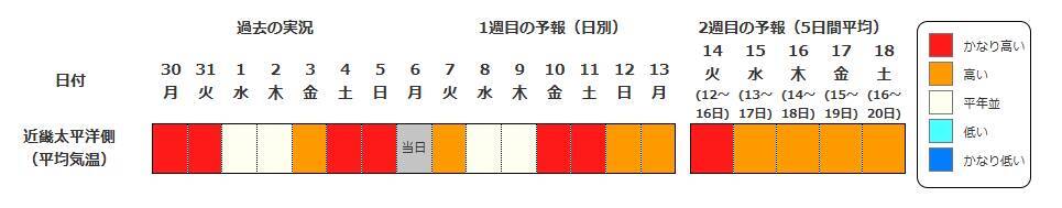 このうち近畿地方の向こう2週間の気温は、暖かい空気が流れ込みやすいため高い日が多く、かなり高い日もあるということです。