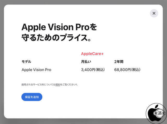 Appleが、Apple Vision Pro (M5)のAppleCare+価格を値下げしています。