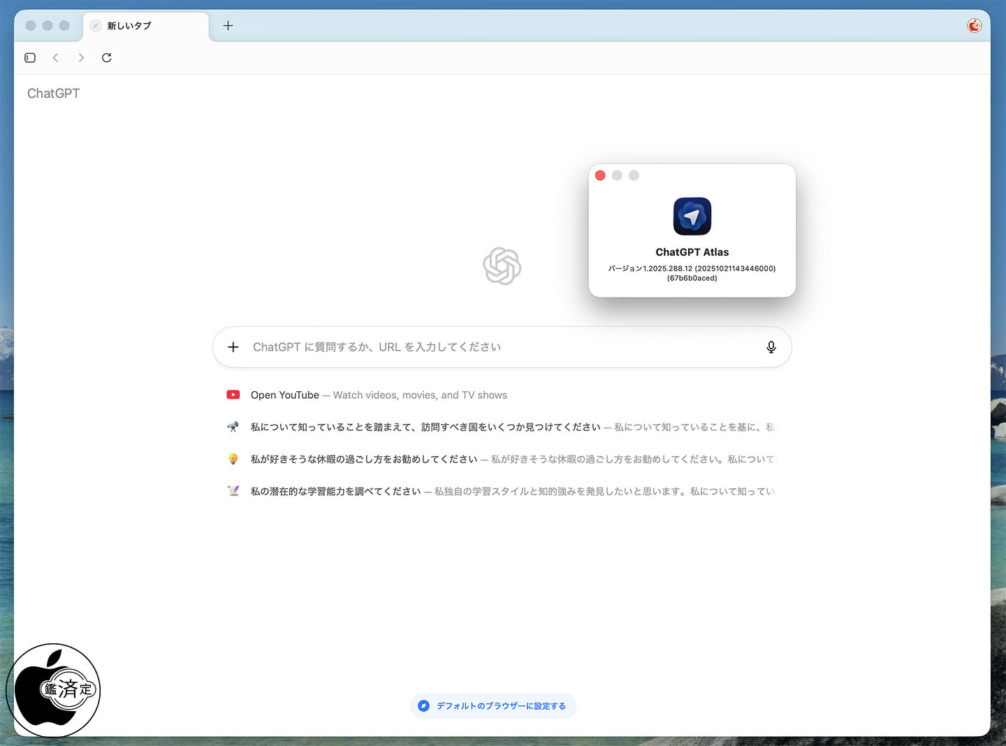 ChatGPT Atlasは、今日からChatGPT Atlas for macOS版をFree、Plus、Pro、Goユーザー向けに全世界で提供が開始されます。