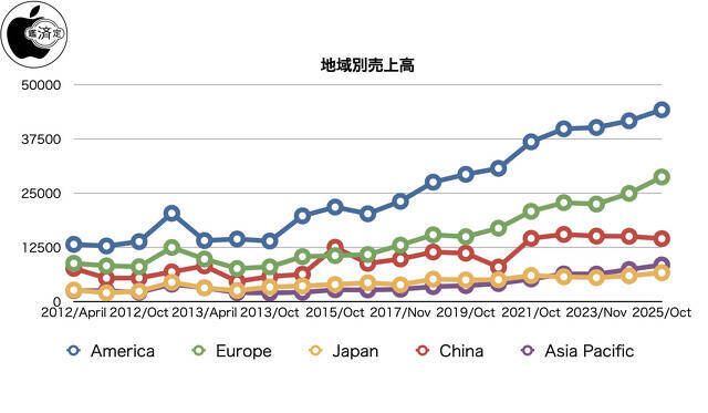 地域別で見ると、昨年同期比でアメリカは6%増、ヨーロッパは15%増、中国は4%減、その他アジア地域は14%増、日本は11%増となっています。