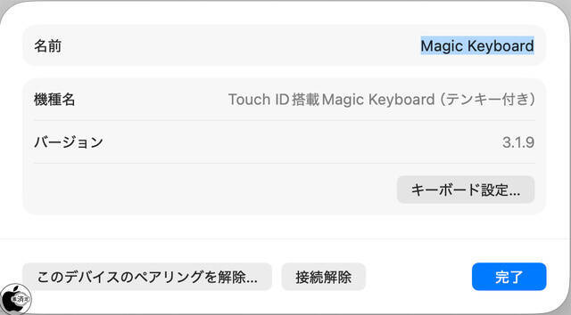 Apple Touch ID搭載Magic Keyboard(テンキー付き) (USB‑C)ファームウェア Ver.3.1.9