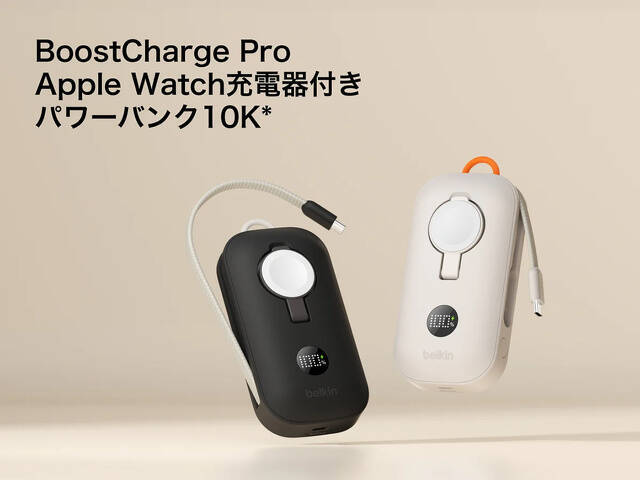 ベルキンが、Apple Watch用急速充電プラグとUSB-Cケーブルを本体に内蔵するポータブルバッテリー「BoostCharge Pro Apple Watch充電器付き パワーバンク 10K」を販売開始しています。