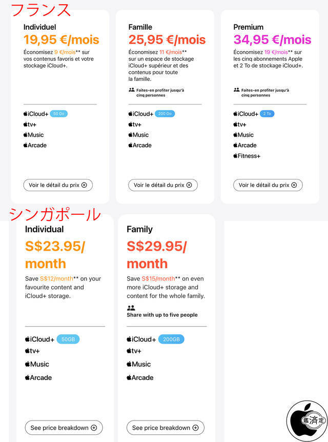以前から提供が行われている国や地域(香港を除く)では「Apple One」サービスに、iCloud+ 2TBとApple Fitness+を加えた「Apple One Premierプラン」が追加されていますが、今回、新しく追加された国や地域ではApple One Premierプランの追加が行われていません。