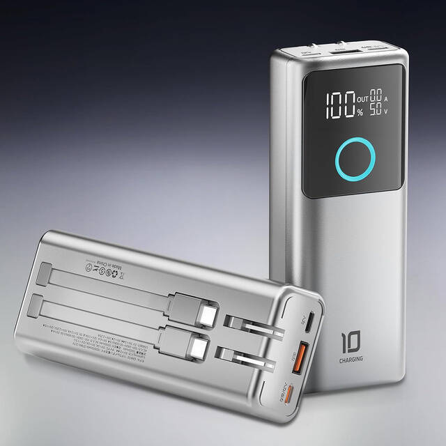 Amazonが、hansangのコンセント一体型充電ケーブル内蔵ポータブルバッテリー「[GNK10](https://amzn.to/4oXQj3B)」を*1,399円*で販売しています。USB-Cケーブルを2本内蔵した10000mAhバッテリーです。