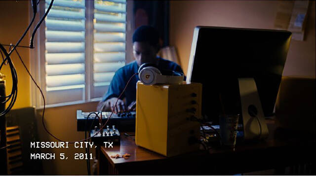 映像は、若き日のトラヴィスが初代のBeats Studioヘッドフォンを着用、Apple iMacでビートを制作しているシーンで幕を開けます。制作に没頭し眠りに落ちると「Circus Maximus」ツアーで満員となったオーディエンスの熱気に包まれる鮮明なイメージが広がりますが、母親の声で現実に戻されます。