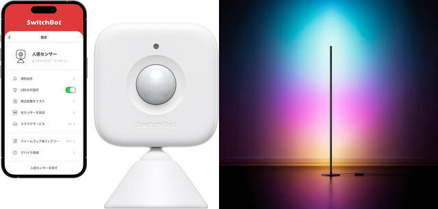 Amazonが、SwitchBotのMatter対応SwitchBot 人感センサーと、Matter対応SwitchBot RGBICフロアライトとのセットを3,984円で販売しています。