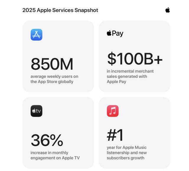 2025年はAppleのサービスにとって記録的な年となり、目覚ましい成長、グローバル展開、そして継続的なイノベーションを特徴とし、Apple TV、Apple Music、Apple Newsから、Apple PayやiCloudといった日々の必需品まで、世界中のユーザーに充実した体験を提供したと発表しています。