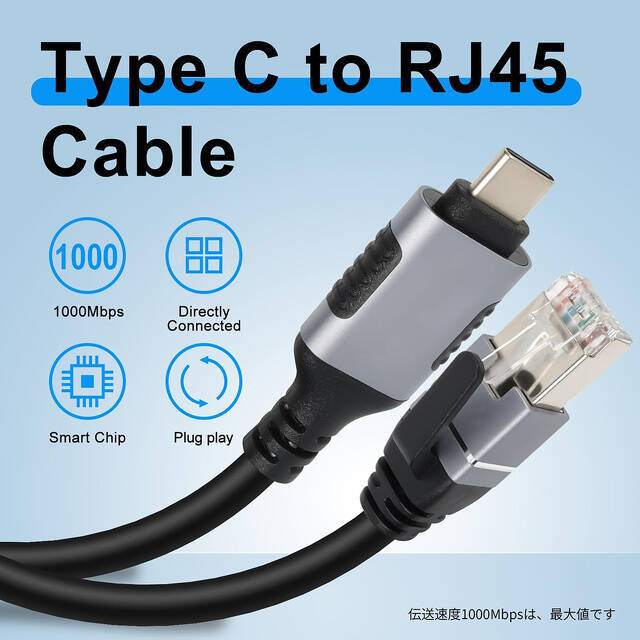 USB-Cポートから有線LAN接続が可能で、アダプタ不要の便利なケーブルです。