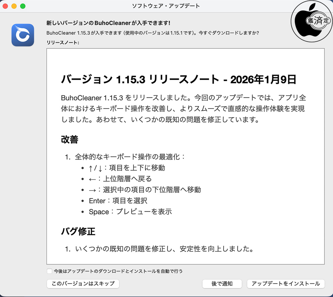 Dr.Buhoが、Mac用クリーンアップソフトウェア「BuhoCleaner 1.15.3」をリリースしています。