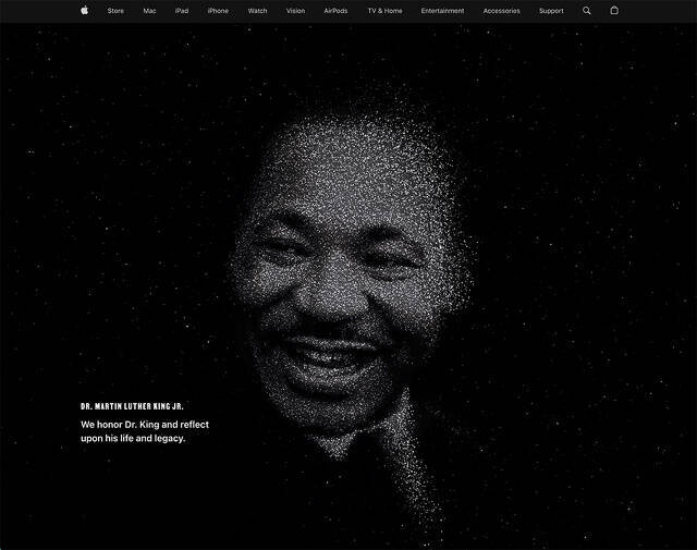 米Appleが、トップページに、マーティン・ルーサー・キング・ジュニア氏の写真を掲載しています。