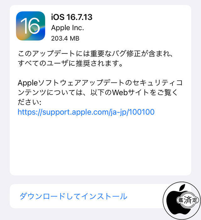 Appleが、iTunes経由または、iOSデバイスのソフトウェア・アップデート経由で、iPhone用アップデート「iOS 16.7.13 ソフトウェア・アップデート」の配布を開始しています。