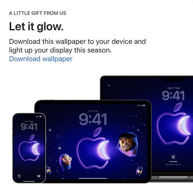Appleが、サウジアラビア、サウジアラビア王国、アラブ首長国連邦のAppleオンラインストアにて、イスラム教の人々が3月下旬から4月下旬まで行う断食文化「ラマダーン」に合わせ、聖なる月をモチーフにしたiPhone/iPad/Mac用壁紙の無料配布を行っています。