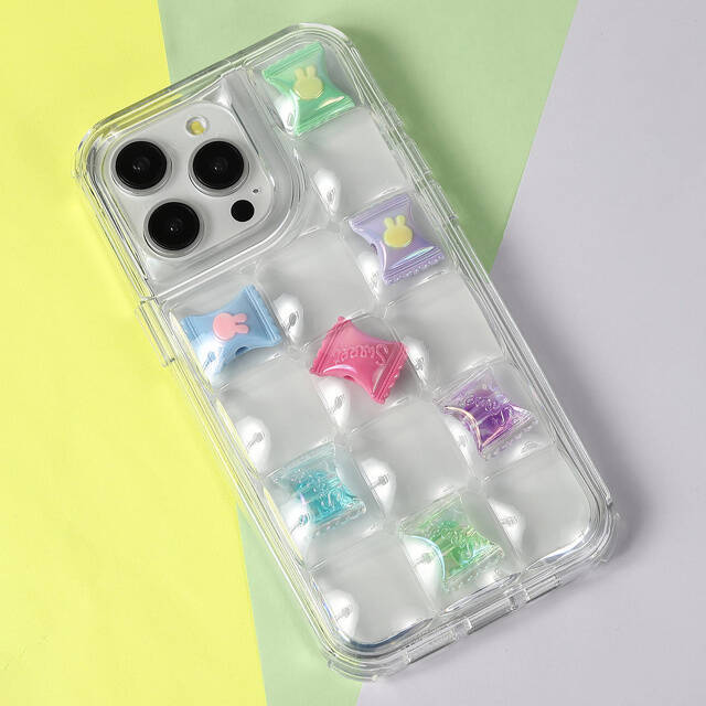 ボンボンドロップシール、ポコポコシールなどを14個納めるスペースが用意されたiPhone用ケースです。