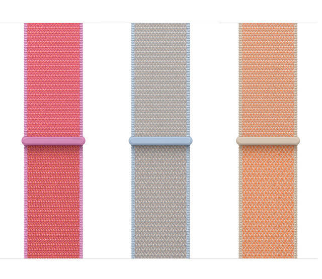 Appleが、Apple Watch用スポーツループに、2026年春カラーモデルとして「ブライトグアバ」、「ブルーミスト」「カンタロープ」を、各6,800円で追加発売しています。