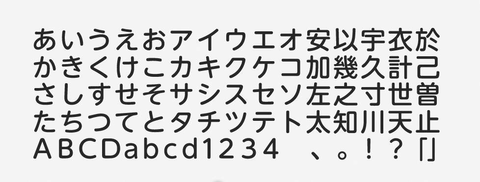 UD新丸ゴは、ユニバーサルデザインに配慮しつつ親しみやすさや優しさを感じさせます。エッジに丸みがあって柔らかな雰囲気なので、絵本にも最適なフォントと言えるでしょう。新丸ゴとの違いが顕著なのは、かな文字や英数字です。UD新丸ゴの字面は新丸ゴと比べてやや小ぶりで、文字の形もより手書きに近い自然なデザインが採用されました。英数字もシンプルなデザインで誤読を防げます。UD新ゴとの統一感があるため、あわせて使いやすい組み合わせです。