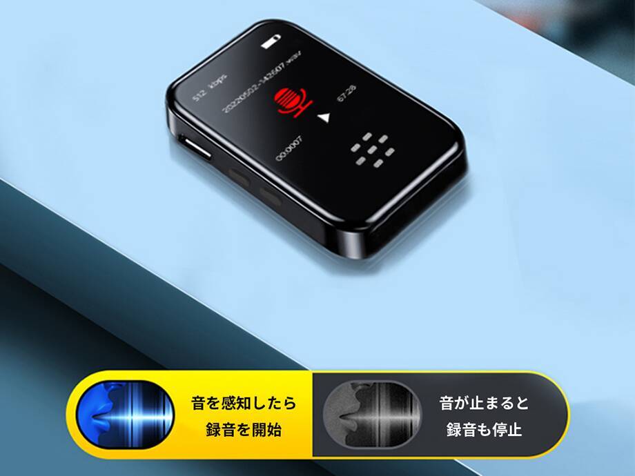 本製品は、スマホと連携できることが特徴。iOS 10以降やAndroid 6.0以降を搭載した端末に対応する。音声が検出された際に自動で録音を開始し、音声が途切れると録音も自動で停止する機能を搭載。デバイスの右側にあるスライドスイッチで、録音のスタートと録音内容の保存を制御することもできる。
