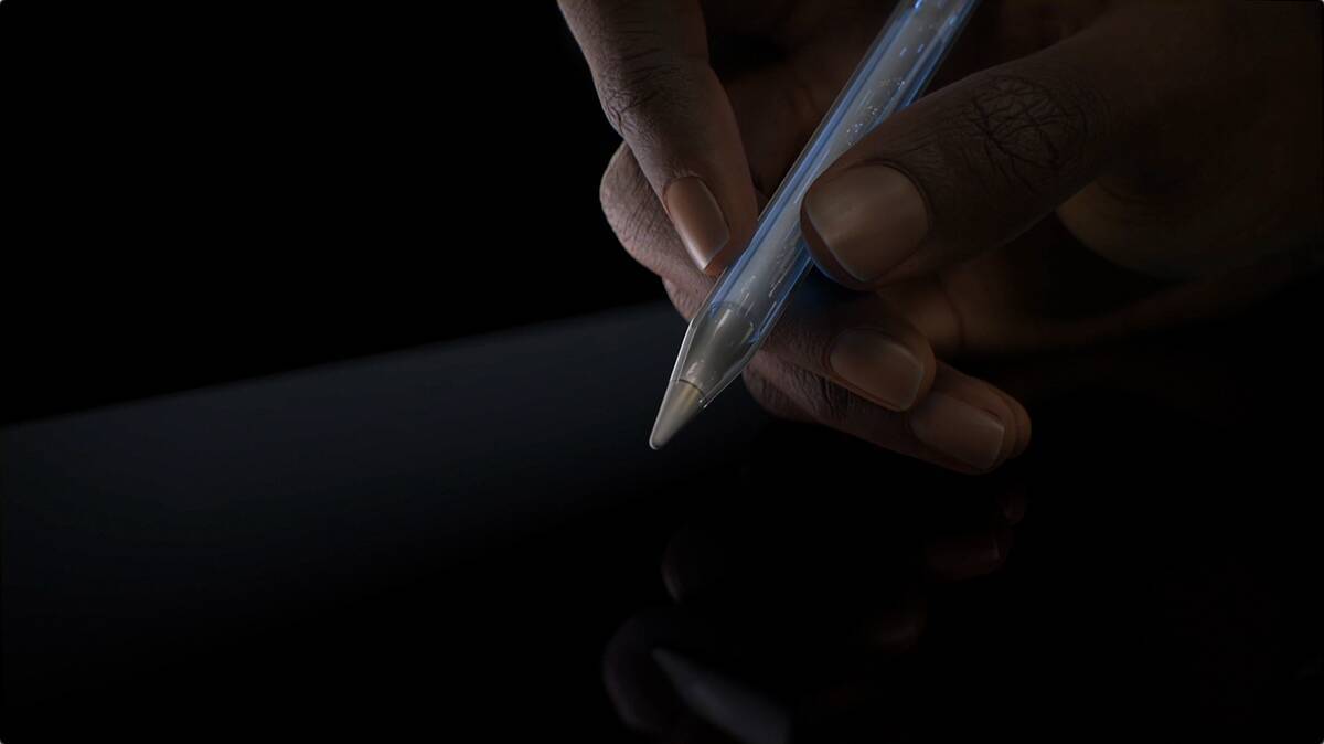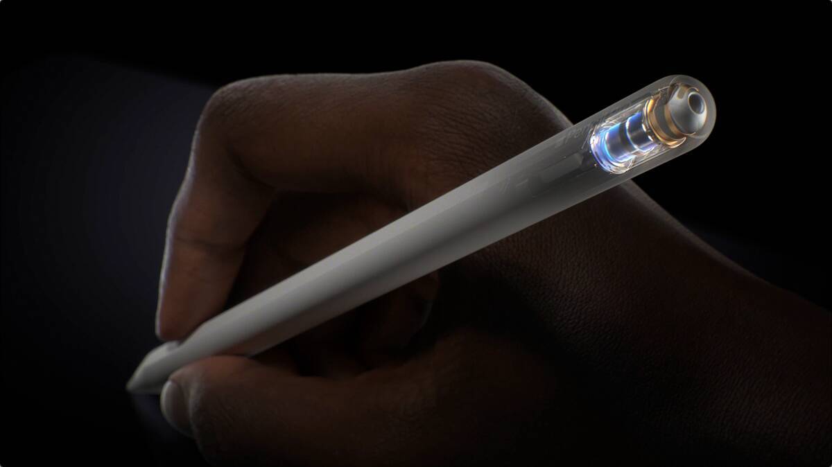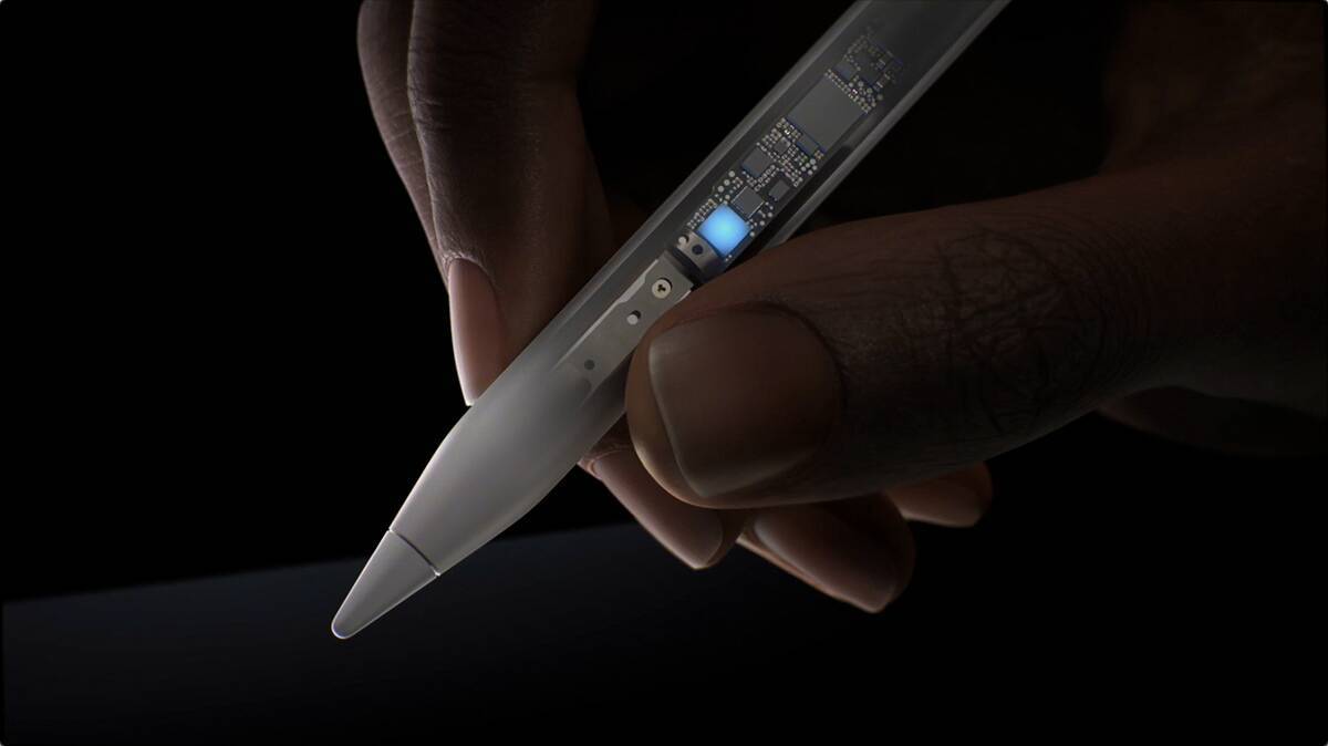 操作に直結する「Apple Pencil Pro」での新しい特徴としては、軸に新センサーが内蔵されたことが挙げられます。これにより、たとえば指で強く押す「スクイーズ」の操作で、ツールパレットを開けるようになりました。