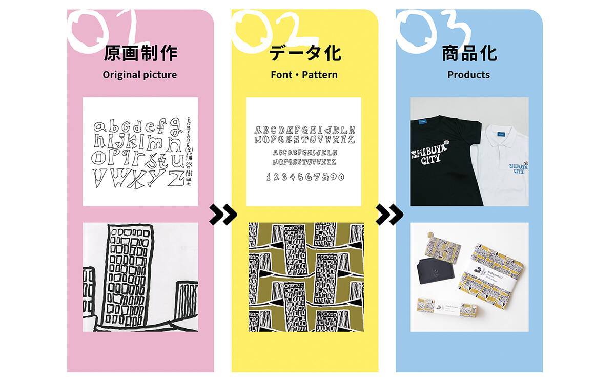 「ご当地フォント」は、障がいのある人とデザイナーと障がい者支援事業所による共創で、世界中にフォントやパターンを届けるソーシャルプロジェクトです。フォントは無料で提供され、パターンを有料販売することで福祉に報酬が支払われています。