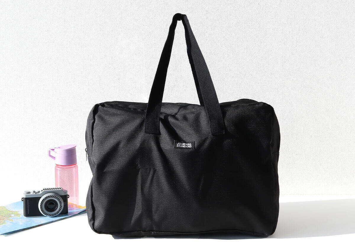 人気ブランド「ジャーナル スタンダード」コラボのブラック×シンプルなデザインがおしゃれな大容量ボストンバッグ。