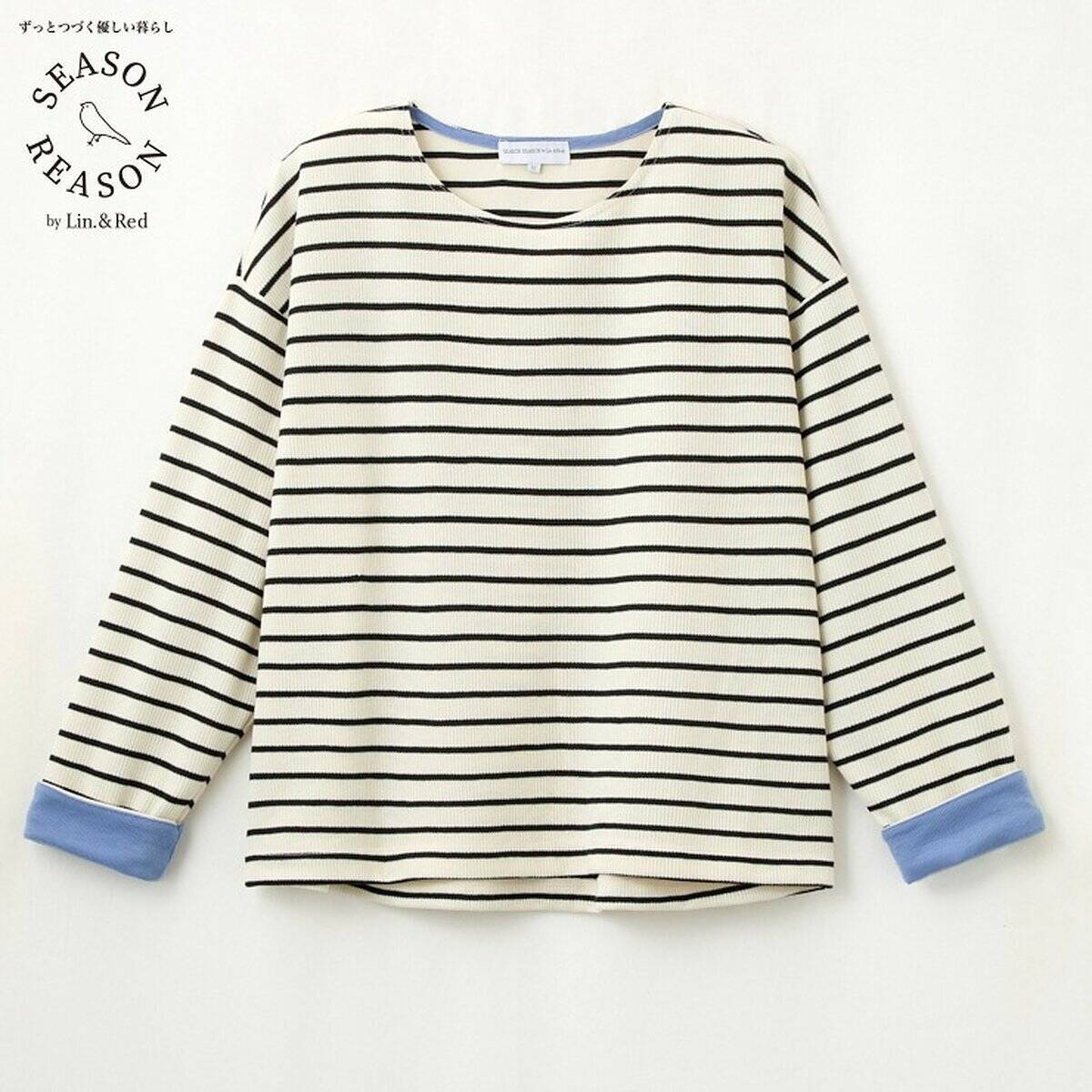 主張しすぎない細めのボーダーで着回し力抜群のプルオーバートップス。袖の折り返しに施した配色デザインがさりげないアクセントになり、トレンド感のあるスタイルを楽しめます。