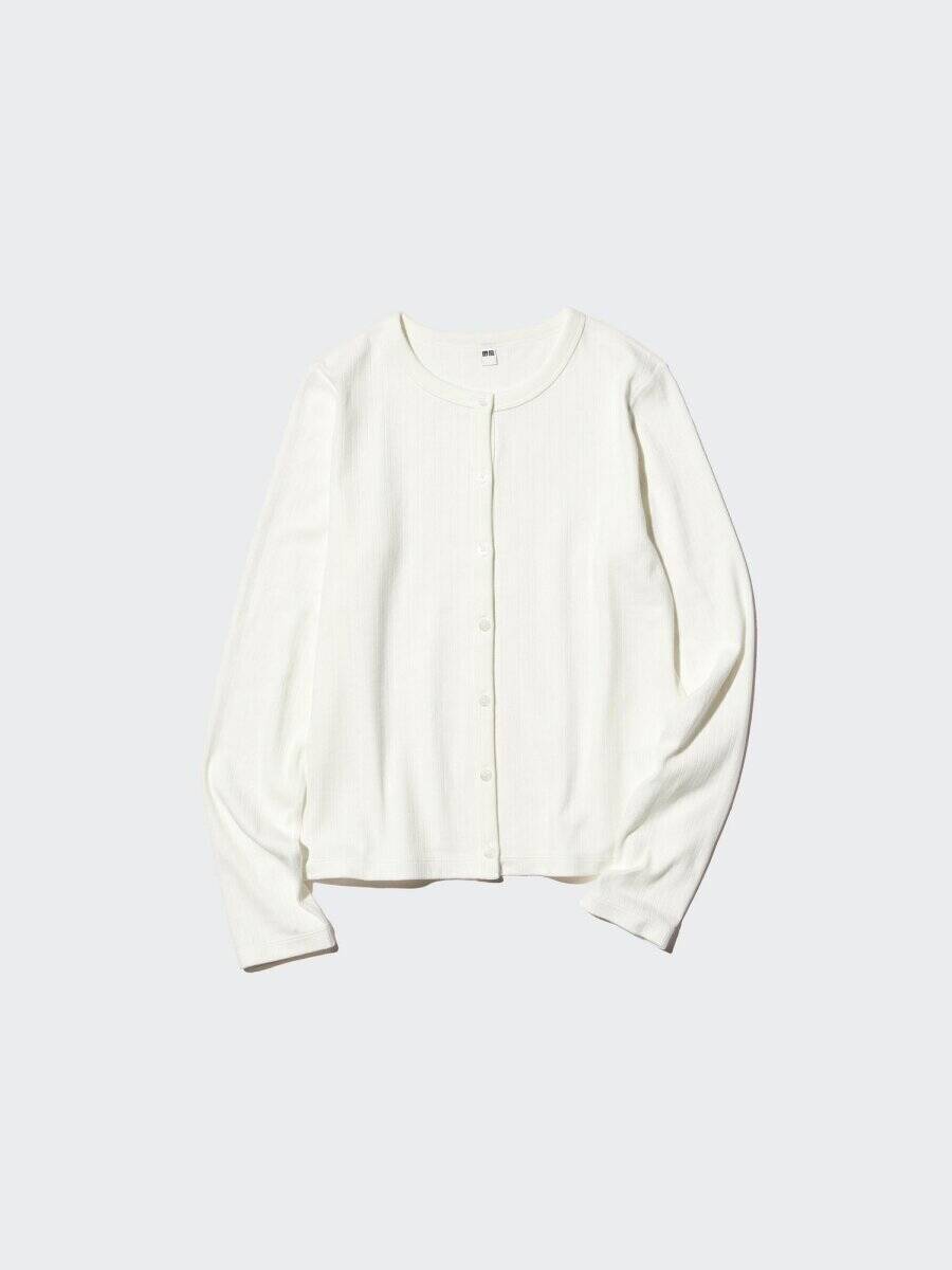 ユニクロのスカラップクルーネックカーディガン