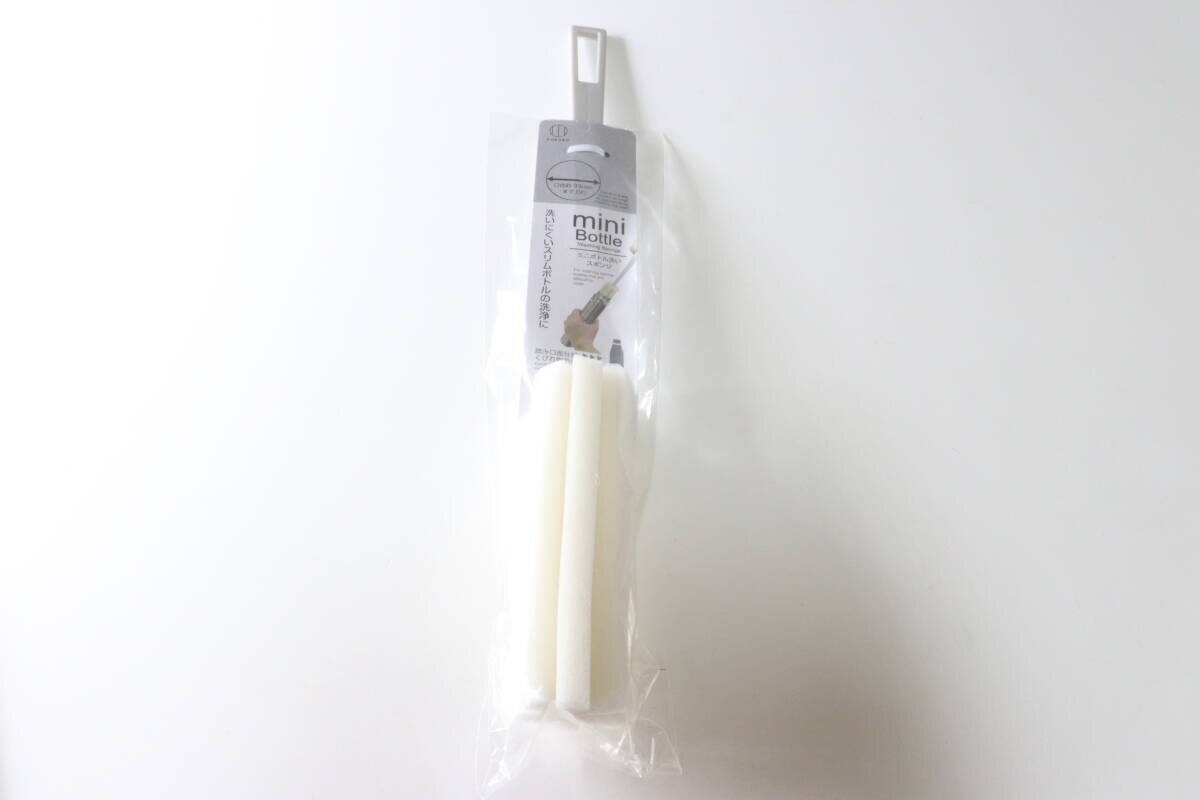 今回はダイソーで購入した『ミニボトル洗いスポンジ』をご紹介しました。ボトルスポンジはかさばりがちですが、これならスリムでコンパクトなのでスマートに収納が可能。フックで吊るして水切りや収納も可能です。