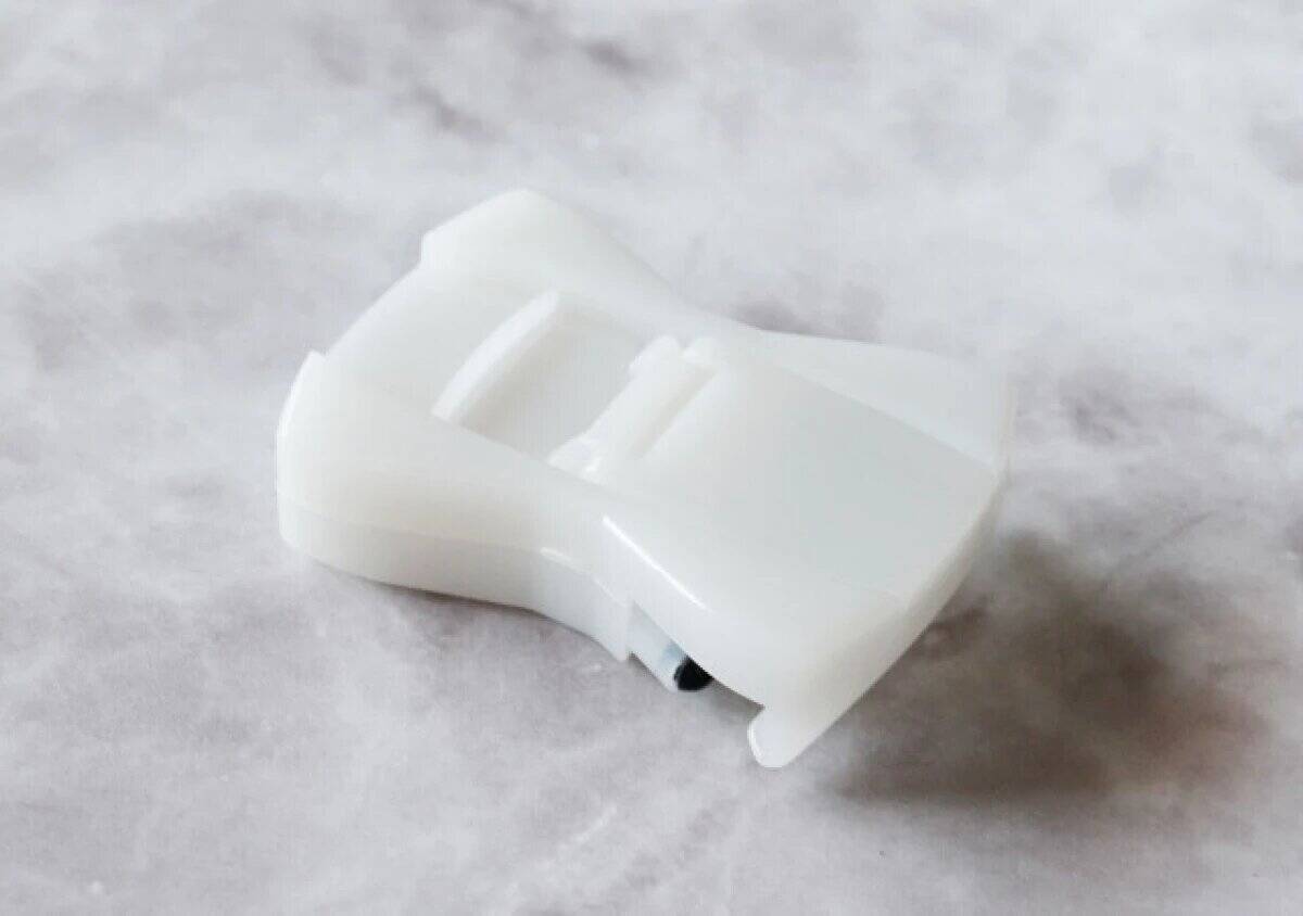 指を入れるリボンもかなり薄くコンパクトなつくりになっていて、先端部分が少しとがっているので目元や小鼻回りなどの細かい部分までしっかりキレイに塗れますよ。