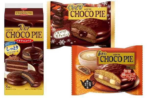 ロッテは9月3日(火)に「チョコパイ」ブランドより「プチチョコパイ<濃厚ショコラ>」を、9月24日(火)に「くちどけチョコパイ<生チョコレート>個売り」と「和のチョコパイ<加賀棒ほうじ茶ラテ>個売り」を全国発売します。