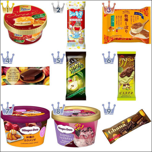 秋の味覚が楽しめるアイスからちょっとだけ贅沢なアイスなど、様々な商品がランクインしています。