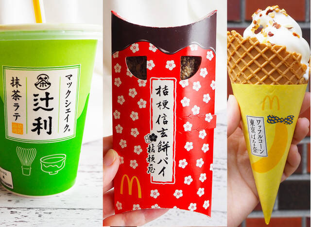 元記事:【マクドナルド新作】ご当地名物とコラボ♡『マックシェイク® 辻利抹茶ラテ』『桔梗信玄餅パイ』『ワッフルコーン 東京ばな奈』をレポート