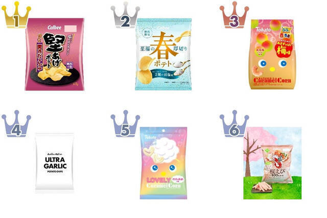 今週は堅あげポテトの関西だししょうゆが貫禄の1位を獲得しつつ、梅・岩塩・わたあめ・ウルトラガーリックと個性豊かなフレーバーたちが勢いよく躍進した週となりました。