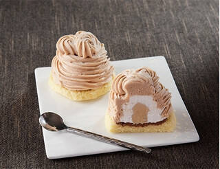 上から下まで栗感!栗の深みを感じるマロンクリームを1口目から楽しめます。スポンジにも栗を使用。マロンホイップ・マロンチョコ・渋皮栗のダイスでさらに栗を感じていただけるよう仕上げました。
