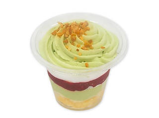 ピスタチオを使ったカップケーキです。ピスタチオのムースやホイップに、フワンボワーズソースを合わせ、見た目も味わいもメリハリのある仕立てです。2022/3/31発売 -