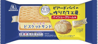 「ビスケットサンド」はバニラアイスクリームとしっとりビスケットのシンプルな仕立てながら、濃厚で満足感のある味わいで、多くのお客様に支持をいただいています。この度は、ビスケットサンドの魅力をより多くのお客様に伝えたいとの思いから、幅広い世代に人気のあるシュークリーム専門店「ビアードパパの作りたて工房」とコラボレーションし、大人気パイシュークリームの味わいをビスケットサンドで再現しました。卵のコクと上品なバニラの香りが特長の「カスタードアイス」を「しっとりビスケット」でサンドした相性抜群の贅沢な味わいを楽しめる商品です。