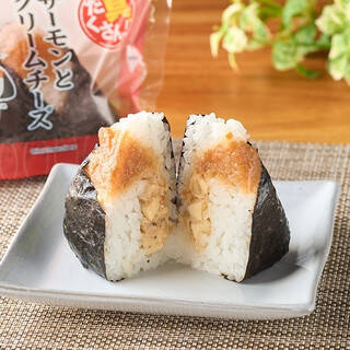 クリームチーズ和えと醤油タレ和えの2種のサーモン和えを具材に使用したおむすびです。