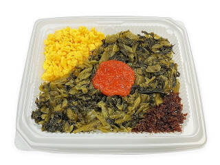 御飯と相性の良い高菜と玉子そぼろ、おかか、辛子明太子を彩りよく盛り付けた食べ進みの良いお弁当です。2023/11/14発売 -