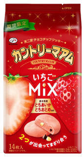 ・栃木県産「とちあいか」のピューレと「とちおとめ」果汁を生地に練り込み、いちごの味わいを引き立たせるホワイトチョコチップとスイートチョコチップを合わせて焼き上げた、期間限定カントリーマアム