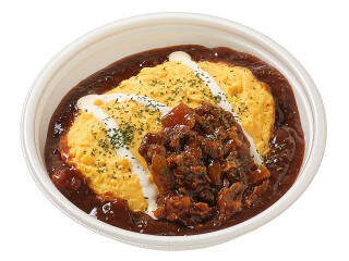 トマトライスにデミグラスソースをかけた定番のオムライスです。2023/10/31発売 -