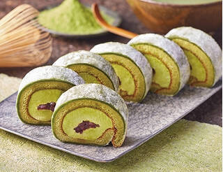 求肥ともち食感生地を重ね、抹茶クリームと粒あんを巻いた、抹茶大福仕立てのもち食感ロールです。