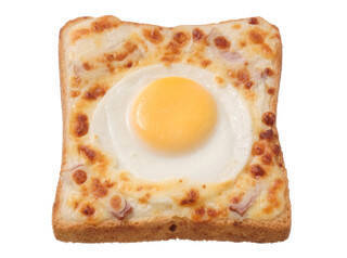 厚切り食パンに目玉焼き、ベシャメルソース、ベーコン、チーズをのせて焼き上げたトーストサンドです。2024/9/11発売 -