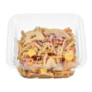 ごぼう、レンコン等の根菜を使用し、ツナと紫キャベツを加えて胡麻ドレッシングとマヨネーズで味付けしたサラダです。