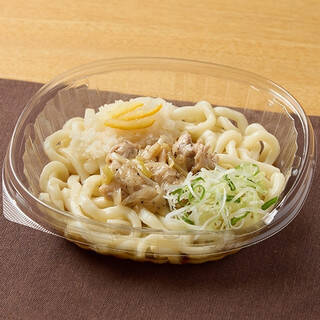 しなやかで弾力のあるうどんに、豚しゃぶ、すだち、青ねぎ、花かつおを組み合わせた冷たいおうどんです。おろしポン酢をかけて、さっぱりとした味わいをお楽しみください。2025/7/1発売 -