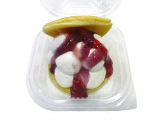 酪王牛乳を使用したたっぷりのミルククリームと苺・ラズベリー・ブルーベリーの3種類のベリーを味わうソースを合わせ、ふんわり食感のパンケーキでサンドした商品です。2025/7/21発売 -