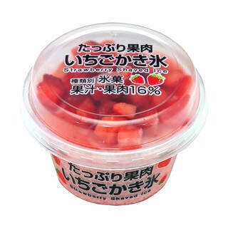 天面にいちごの果肉とソースをたっぷりトッピングした贅沢なかき氷です。かき氷の中に練乳を入れることで最後まで飽きずに食べることができます。いちご果汁・果肉16%使用しました。